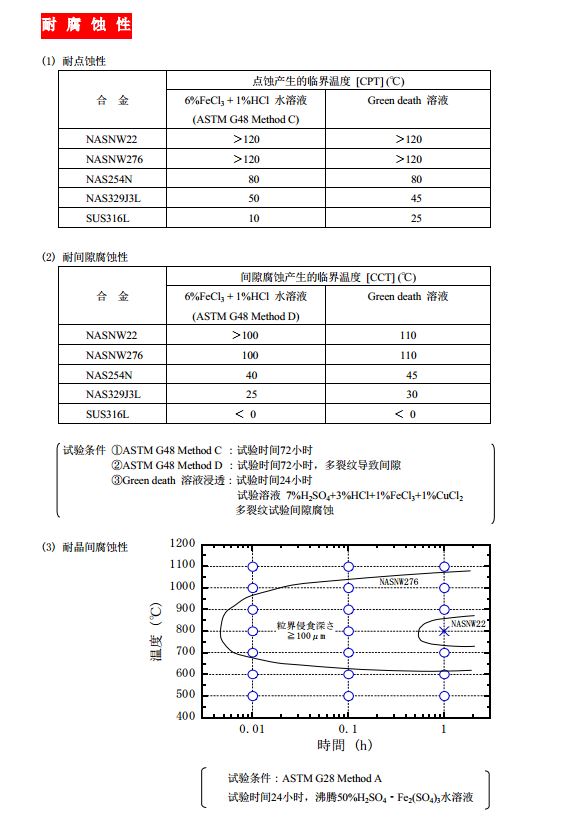 特性: Hastelloy C-22合金是全能的鎳鉻鉬鎢合金,比其他的鎳鉻鉬合金(包括Hastelloy C-276、C4以及Inconel 625)擁有更好的綜合抗腐蝕性能。Hastelloy C-22合金有很好的抗點腐蝕、縫隙腐蝕和應力腐蝕開裂的能力。它具有優異的抗氧化性水介質的能力,包括濕氯、含有氯離子的硝酸或者氧化性酸的混合液。在還原性和氧化性工藝物料流交替出現的工況下,Hastelloy C-22合金是理想的選擇。依靠這種萬能的性能,它能在一些令人頭疼的環境中使用,或者在多功能工廠中應用。Hastelloy C-22合金對各種化工環境有著異常的抗蝕能力,包括強氧化性物質,比如氯化鐵、氯化銅、氯、熱污染溶液(有機的無機的)、甲酸、乙酸、醋酸酐、海水和鹽水溶液等。它能阻止在焊接熱影響區形成晶界沉淀,使它在焊接狀態下也能適應很多種化工工況。 應用: 備注: Hastelloy和C-22是Haynes International, Inc.的注冊商標,Inconel是SMC國際鎳合金集團的注冊商標。