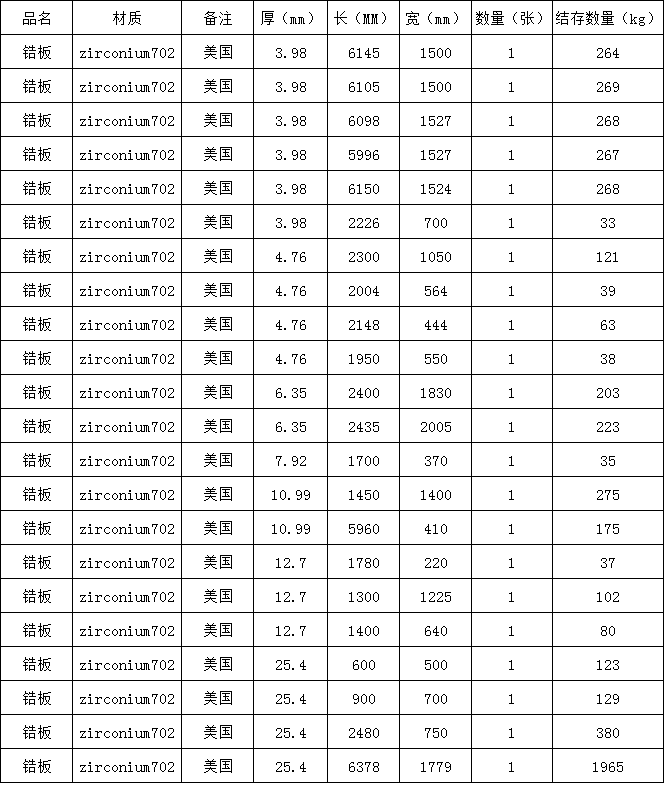 zirconium702鋯板